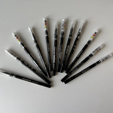 - رنگدانههای قوی: معمولاً دارای رنگ مشکی بسیار غلیظ و پررنگ (فوقمشکی) است تا با یک بار کشیدن، جلوهای عمیق ایجاد کند.